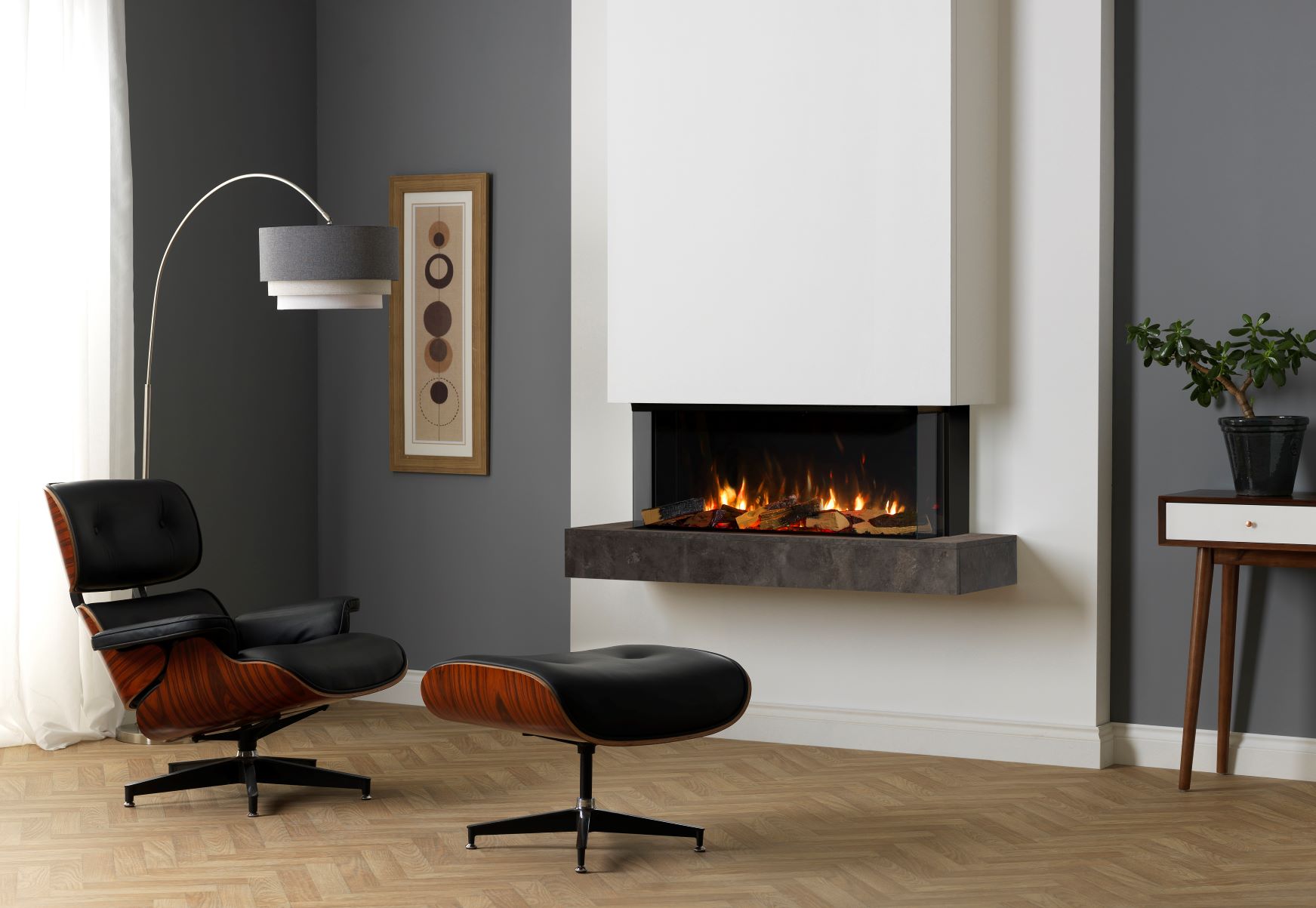 Introducing the VS100 fireplace, a versatile vision ideal for both contemporary and traditional settings. Its glass fronting enables it to seamlessly complement modern furniture designs, while the optional mantel allows it to blend into retro stylings with ease. Manufactured by Charlton and Jenrick, this electric fireplace is part of their i-Range series.
